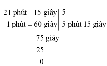 d) 21 phút 15 giây : 5